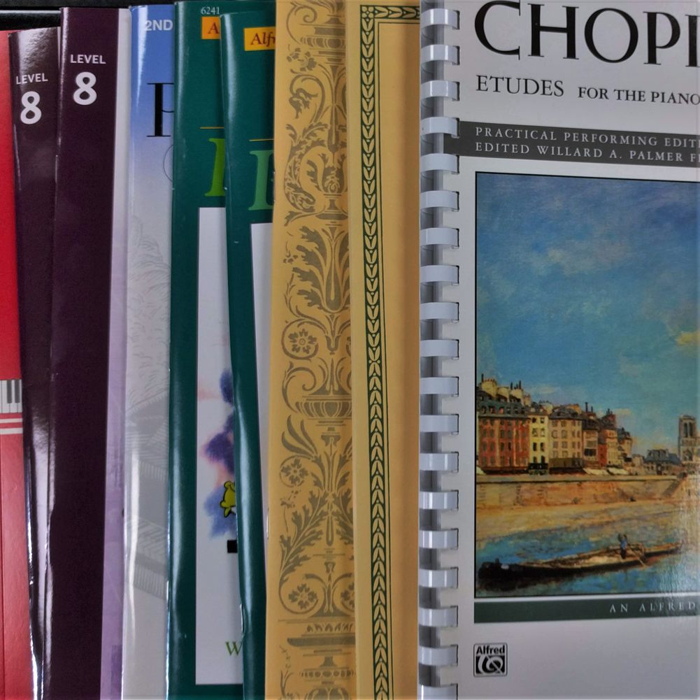 Sonata Music has a collection of music books, including Hal Leonard and Alfred books, as well as Frederick Harris books, which are required for RCM Exams.